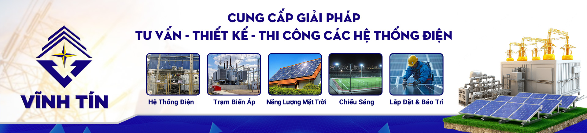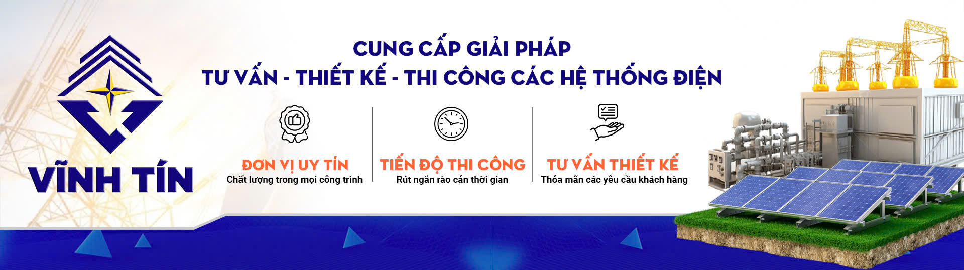 Công ty Cổ Phần Tư Vấn Xây Dựng Vĩnh Tín với đội ngũ kỹ sư điện trên 15 năm kinh nghiệm chuyên tư vấn thiết kế, giám sát, thi công công trình điện, công trình năng lượng mặt trời cùng với đội ngũ kỹ thuật viên và công nhân điện được đào tạo chính quy với kinh nghiệm thi công các công trình đường dây và trạm biến áp cấp điện áp đến 110kV trên khắp tỉnh Đồng Nai và các tỉnh lân cận. Chúng tôi cam kết mang lại sự tin tưởng và hài lòng của Quý khách hàng khi cùng hợp tác với chúng tôi. Với phương châm: Vĩnh Tín – Uy tín và chất lượng, chúng tôi mong muốn Quý khách hàng luôn cảm thấy hài lòng. Kính chúc Quý khách hàng luôn hạnh phúc, thành công và luôn thắng lợi |